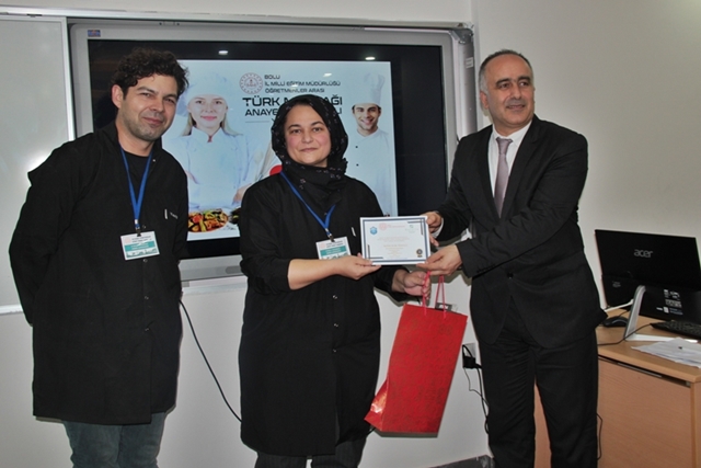 “24 Kasım Öğretmenler Günü Türk Mutfağı Ana Yemek ve Tatlı Yarışması’na” katılan öğretmenlerden dereceye girenlere hediyeleri ve sertifikaları protokol tarafından takdim edildi. Program sonrası bilgi paylaşımında Müdür Ayhan Vural; “Sponsorlarımız Abant Palas Taksim Otelcilik Köşk Otelleri, Gazelle Otel, Narven Termal Kasaba, Koru Otel, Öz Tiryakiler ve Çelik Pençe’ye ’24 Kasım Öğretmenler Günü Türk Mutfağı Yemek Yarışmalarına desteklerinden dolayı teşekkür ediyoruz ve şükranlarımızı sunuyoruz.”dedi.