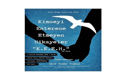Akif Tamer Tombul, kaleme aldığı ve düzenleyip, yönettiği “Ebekulak” hikâyesine farklı bir bakış açısı ile tiyatro eseri haline getirdiği “Kimseyi Enterese Etmeyen Hikâyeler -K.E.E.H” oyunu doktor ve hastaneye yeni gelen hemşirenin tanışmasıyla başlıyor. Hastanedeki bir kadın ve bir erkek hastanın davranışlarını, gözlemlerini günlüğüne not alması ve günlüğüne kendi yaşantılarını da ekleyerek, seyirciye aktarmasını konu alan, izleyenleri gülümseten yer yer de hüzünlendiren iki aşığın öyküsü. Haber: Fatma Marmara