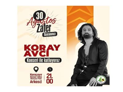 Bolu Belediyesi, Karaçayır Konser Alanı’nda (Karaçayır Parkı arkası) 30 Ağustos Salı günü saat 21.00’da düzenlediği konser için şu ifadelere yer verdi: “30 Ağustos Zafer Bayramımızı Koray Avcı konseriyle kutluyoruz.”