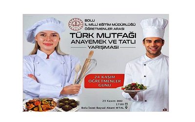 “24 Kasım Öğretmenler Günü” etkinlikleri kapsamında Bolu İl Milli Eğitim Müdürlüğü 2022-2023 Eğitim ve Öğretim Yılı “24 Kasım Öğretmenler Günü Türk Mutfağı Ana Yemek ve Tatlı Yarışması” düzenledi.