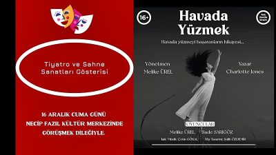 Sahne Sanatları Tiyatrosu Yönetmeni Melike Ürel’in yönettiği, Charlotte Jones’un yazdığı “Havada Yüzmek” adlı oyun 16 Aralık Cuma akşamı saat: 20.00’de Bolu Belediyesi Necip Fazıl Kültür Merkezi’nde sanatseverlerle buluşacak.