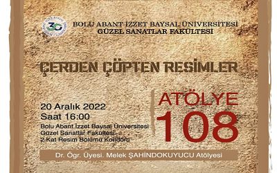 Bolu Abant İzzet Baysal Üniversitesi Güzel Sanatlar Fakültesi Resim Bölümü Dr. Öğr. Üyesi Melek Şahindokuyucu Atölyesi öğrencilerinin “Çerden Çöpten Resimler” temalı resim sergisi, 20 Aralık 2022 Salı günü saat: 16.00’da BAİBÜ Güzel Sanatlar Fakültesi 2.kat Resim Bölümünde açılacak.