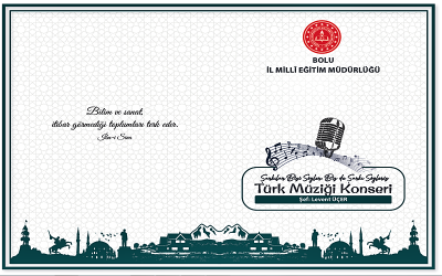 Bolu İl Millî Eğitim Müdürlüğü, İzzet Baysal Halk Eğitimi Merkezi’nin hazırlamış olduğu, “Şarkılar Bizi Söyler, Biz de Şarkı Söyleriz” temalı, Şef Levent Üçer yönetimindeki “Türk Müziği” konseri 24 Ocak 2023 Salı saat: 19.00’da Bilim ve Sanat Merkezi Konferans Salonunda icra edilecek.