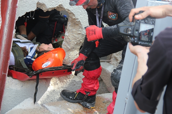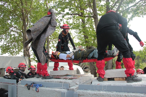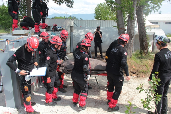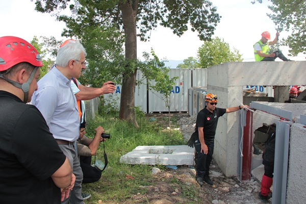 Bolu Valisi Erkan Kılıç, (BAKE), Hafif Arama Kurtarma Akreditasyon sınavında hilti, demir kesme ile enkazdaki betonların saatlerce kırılıp, kesilmesini, enkaz altında kalanların kurtarma çalışmalarını yakından izledi.