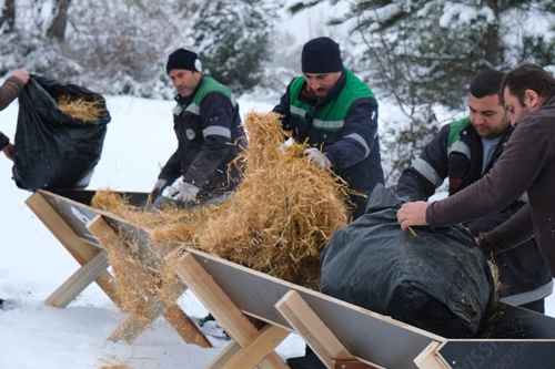 Hava sıcaklığının sıfırın altında 10 dereceye kadar düştüğü At Yaylası’nda belediye ekipleri, yılkı atları için belirlenen 10’a yakın farklı noktaya ahşap yemlikler yerleştirdi. Yemliklere kuru saman bırakılarak zorlu kış şartlarında yiyecek bulmakta güçlük çeken atların beslenmesi sağlandı.