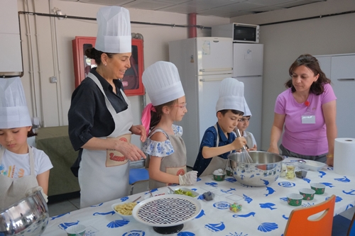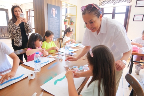 Bir hafta boyunca devam edecek olan Çocuk Atölyesi Etkinliğinde çocuklar, kum boyama yaparak, kek yaparak keyifli vakit geçiriyorlar.