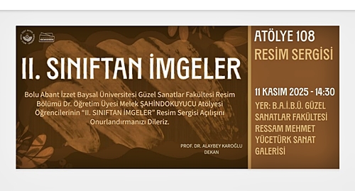 Atölye 108 “II. Sınıftan İmgeler” Resim Sergisi 11 Kasım 2025 Salı günü saat: 14.30’da BAİBÜ Güzel Sanatlar Fakültesi Ressam Mehmet Yücetürk Sanat Galerisi’nde açılışı gerçekleşecek.
