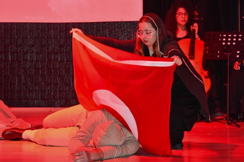 Etkinliğin sonunda öğrenciler ve öğretmenler, Atatürk’ün Selanik’te başlayan yaşamından Kurtuluş Savaşı yıllarına ve Cumhuriyet’in ilanına uzanan hayatını müzikler eşliğinde sahneledi.