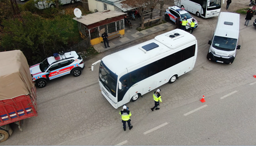 Edinilen bilgide; “Yapılan denetimde 15 Kasım 2025 tarihi itibari ile başlayan “Zorunlu Kış Lastiği” uygulaması doğrultusunda Trafik Timlerince başta okul servis araçlarında olmak üzere ticari araçlarda kış lastiği kullanımı kontrol edilerek lastik derinlikleri ölçülmüş, trafik güvenliği hakkında bilgilendirme yapılmıştır.