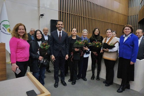 Pasta kesimi sırasında gerçekleştirilen toplu fotoğrafın ardından Başkan Özcan ve Başkan Akduman salonda bulunan kadınlara çiçek hediye etti. Kısa kutlamanın ardından meclis toplantısı kaldığı yerden devam etti.