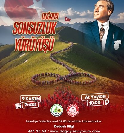 Bolu Belediyesi, eşsiz lider Gazi Mustafa Kemal Atatürk’ün 87. ölüm yıl dönümü dolayısıyla “Doğada Sonsuzluk Yürüyüşü” düzenliyor. 9 Kasım Pazar