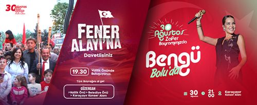 DevamBolu Belediyesi tarafından 30 Ağustos Zafer Bayramı, Hande Ünsal konseri ve Fener Alayı Yürüyüşü ile coşkuyla kutlanacak. Görkemli kutlamalara tüm